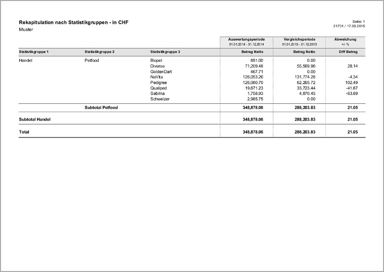 - Rekapitulation der Verkaufsumsätze aus zwei Perioden nach Kundengruppen